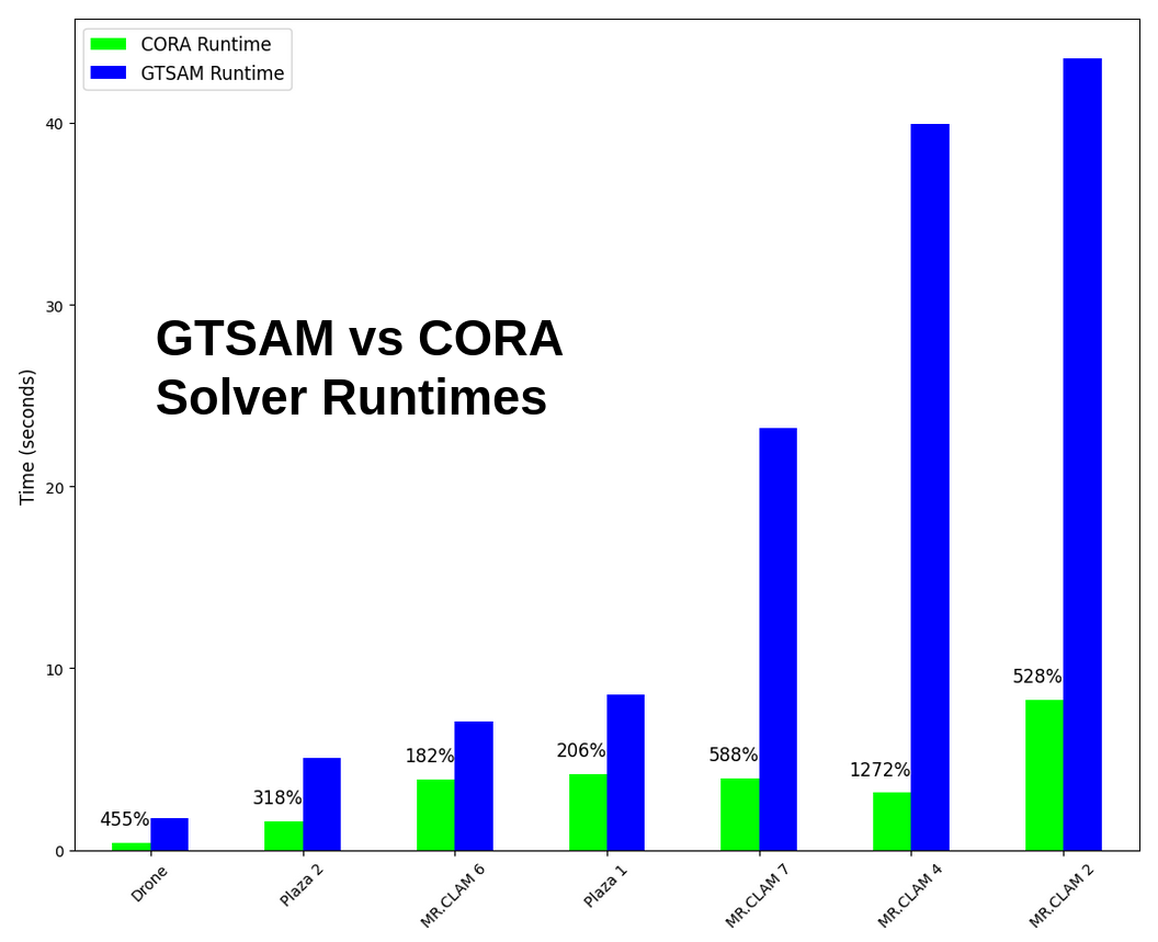 Below you can see our CORA algorithm (a certifiably correct solver) in action on several real-world datasets. We are randomly initializing each instance – a scenario that breaks existing state-of-the-art solvers – and showing that regardless of initialization, our approach returns a certifiably correct estimate of the robot trajectories.